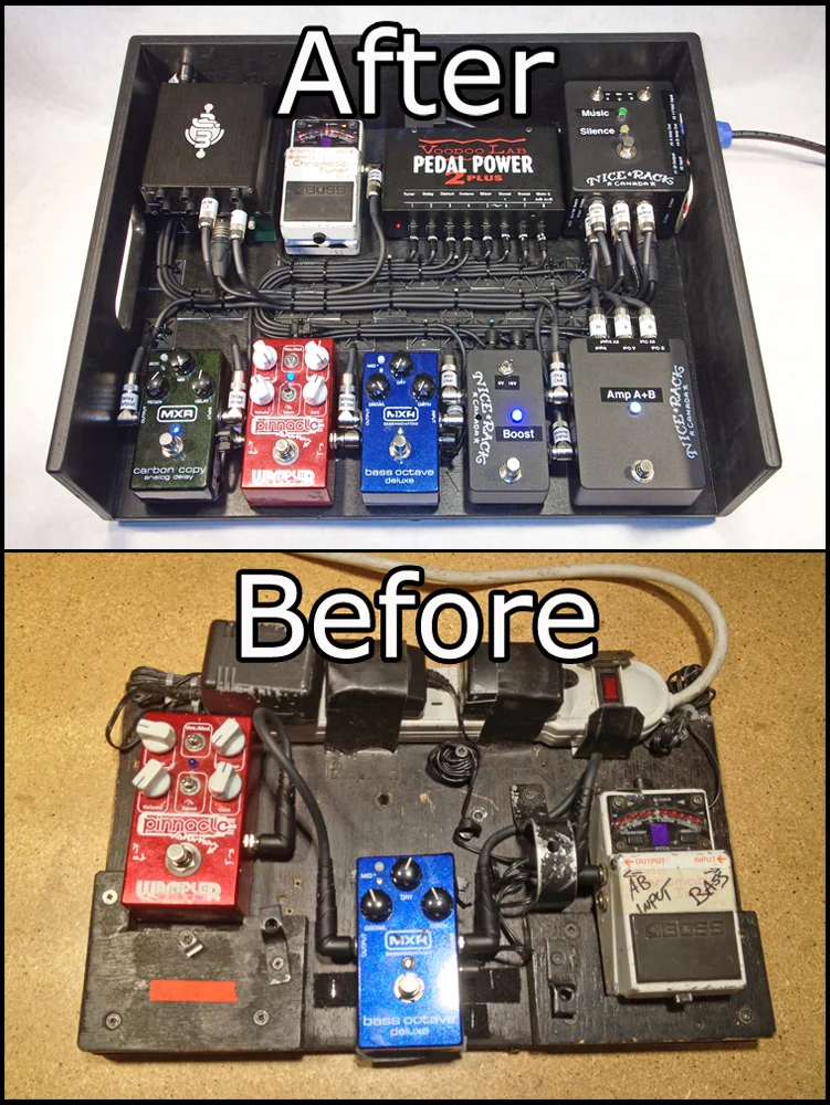 Bassist Tim White of the Headstones came into our shop with his pedalboard and asked us to "fix it up". I think we did okay.